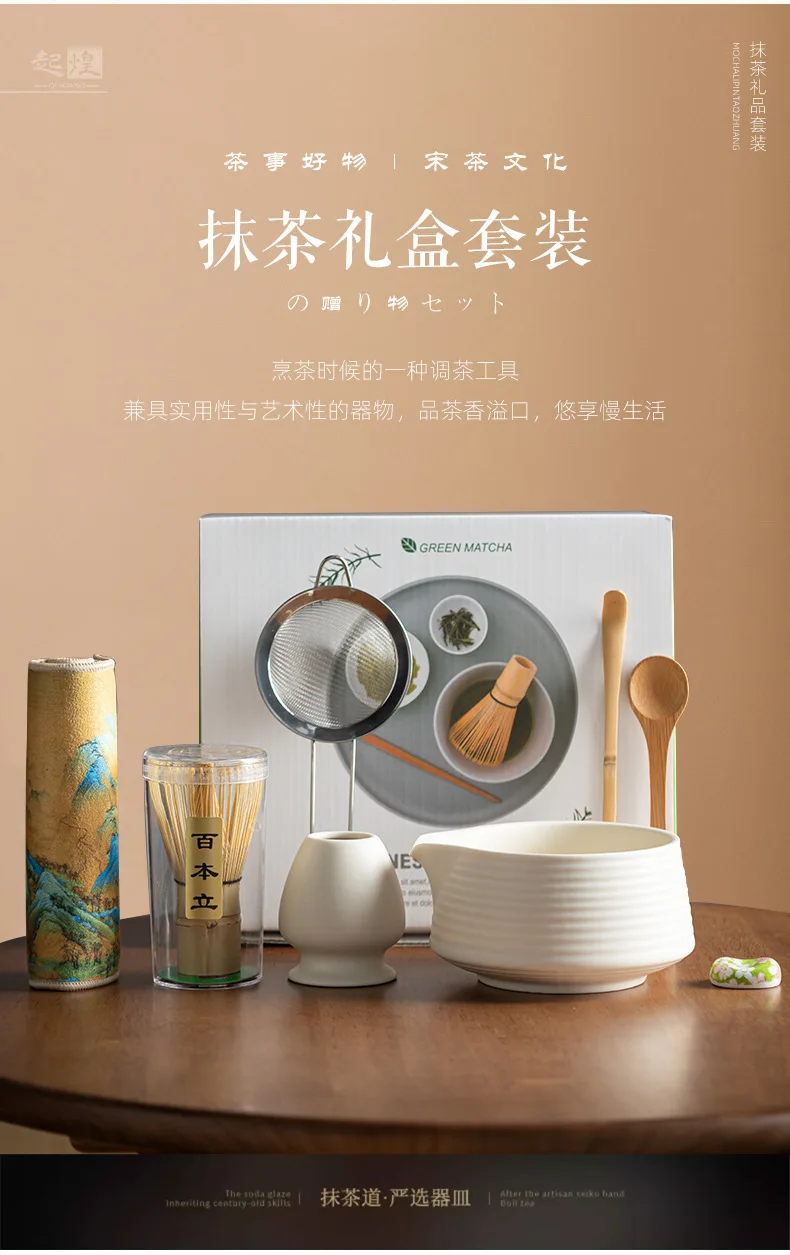 Crafted for true tea lovers, this 8-piece BespritGift Matcha Set brings authenticity and elegance to every ritual. Featuring a ceramic bowl, bamboo whisk, scoop, and more, it delivers a full ceremonial experience — beautifully packaged and ready for gifting.