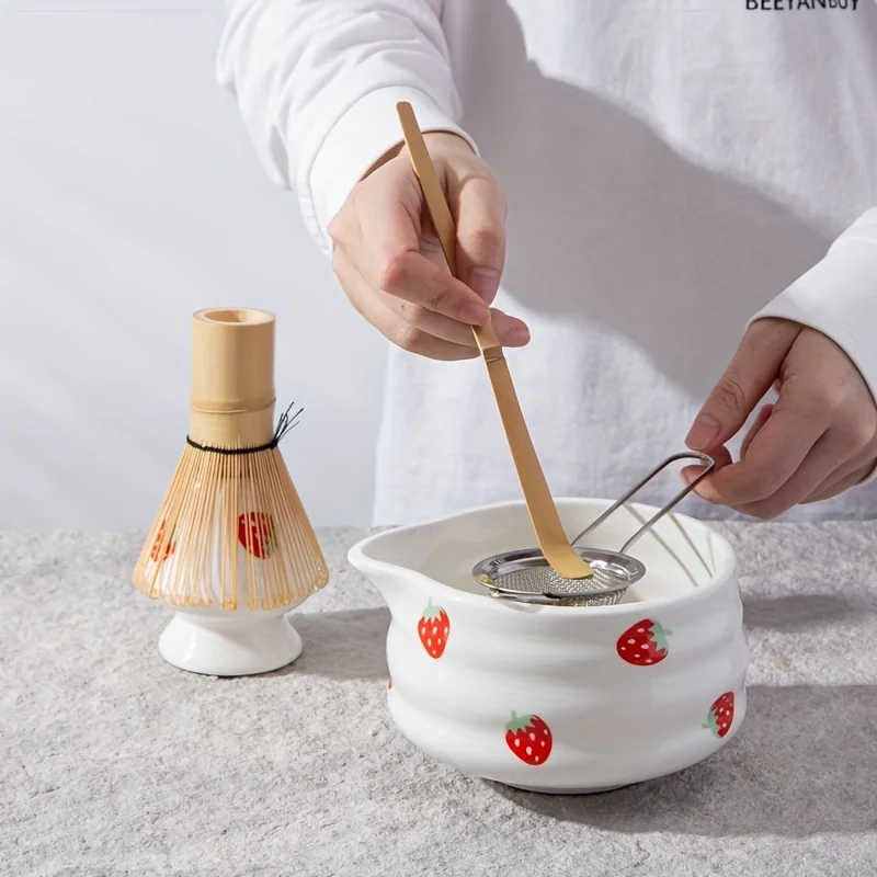 Strawberry Matcha Bowl & Whisk Set – Japanese Ceramic Matcha Kit